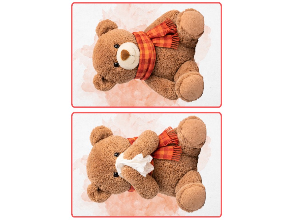 - demonstrační kartičky plyšového medvídka, které znázorňují danou nemoc