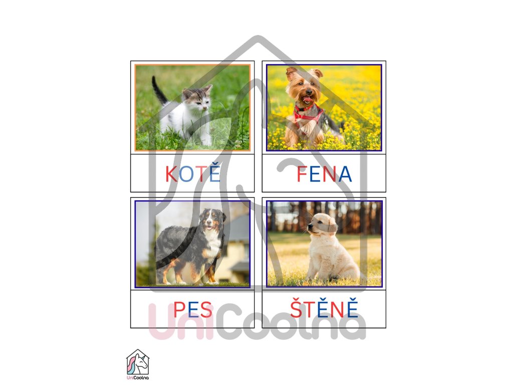- Třísložkové karty pomáhají dětem pojmenovávat svět kolem sebe, rozšiřují slovní zásobu a přirozeně rozvíjejí čtení.