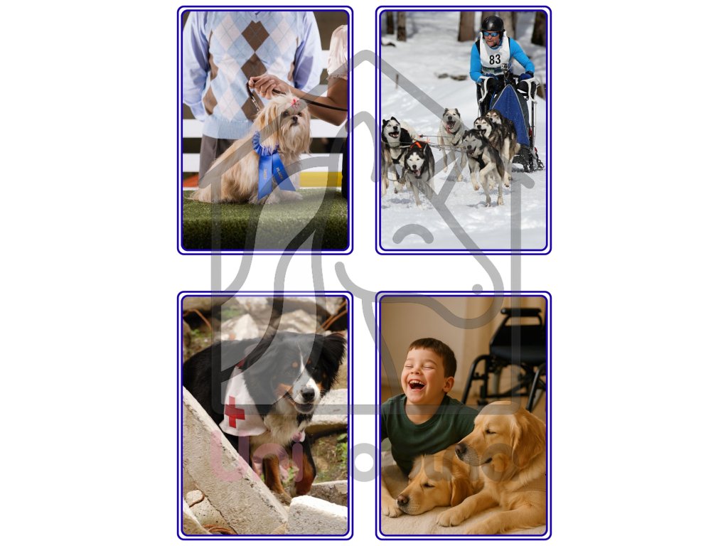 - 61 stran didaktických výukových CheckKaret s reálnými fotografiemi / obrázky - EduKarty, Třísložkové karty, StoryKarty, kartičky "Jak nám zvířata pomáhají" (např. pes - služební, asistenční, záchranářský, pastevecký...).