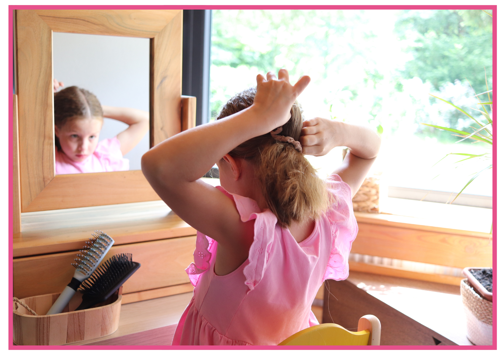 👉 Vidí výsledek své práce – čisté zrcadlo, zalité květiny, ustlanou postel, polička bez prachu, učesané vlásky...