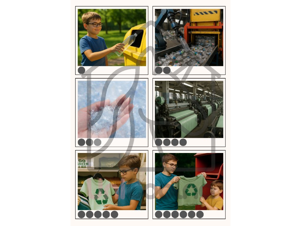 - Každá sada obsahuje sérii obrázků, které děti seřazují podle dějové posloupnosti – od začátku až po konec příběhu. Dítě vypráví, co se na obrázcích děje, hledá souvislosti a rozvíjí svou představivost.