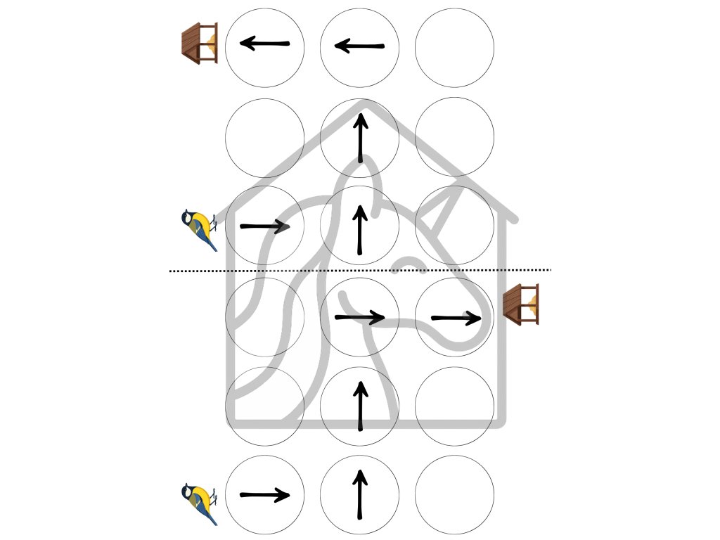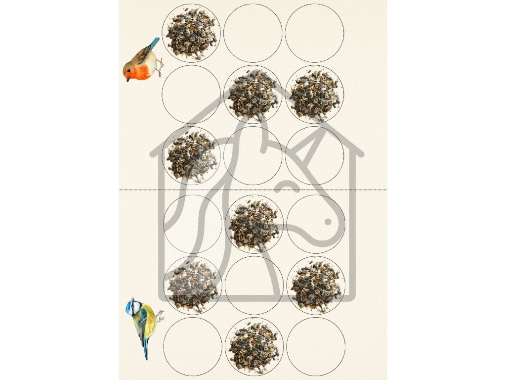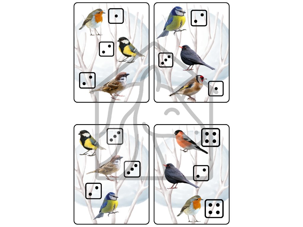počítání ptáčků (spojení s kostkou) a umisťování do krmítka