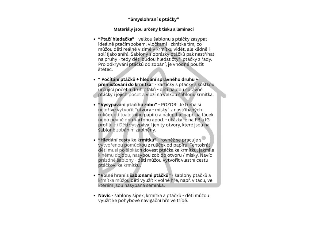 - V souboru najdeš čtyři smyslové aktivity na téma ptáčci v zimě