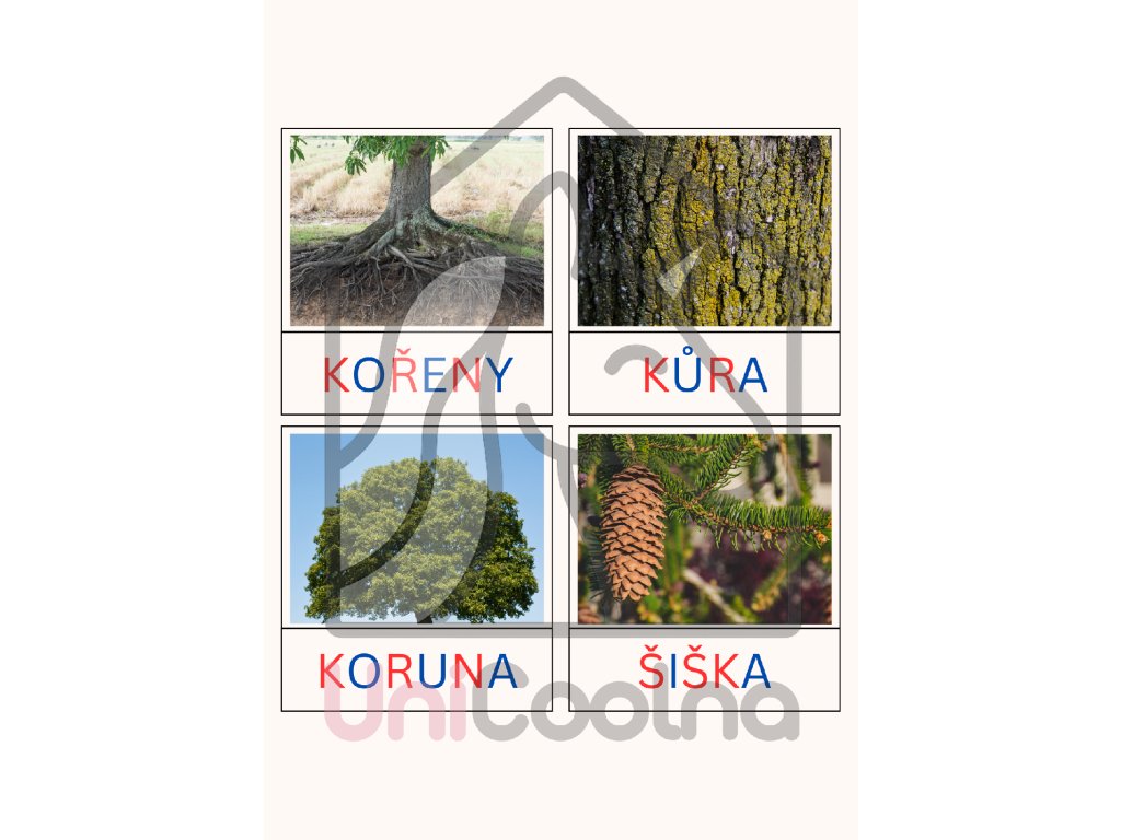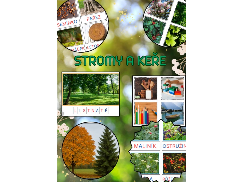 - VŽDY bonusový materiál: MatiKarty s obrázky k přiřazování, WowKarty - prosvětlovací obrázky, 2x DotKarty navíc (dřeviny okrasné, ovocné a exotické; využití stromů člověkem a v přírodě), plus 12ks ilustračních karet (rozmanitost dřevin).