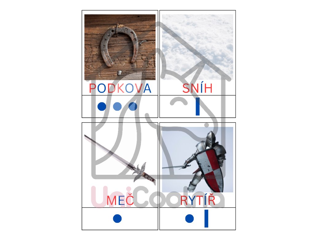 - Třísložkové karty pomáhají dětem pojmenovávat svět kolem sebe, rozšiřují slovní zásobu a přirozeně rozvíjejí čtení.